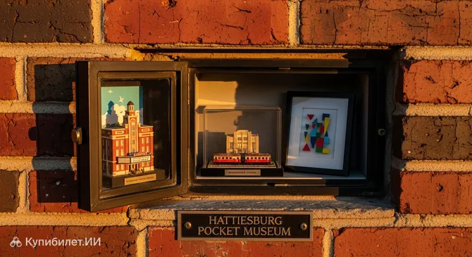 Представьте себе музей, который может полностью поместиться в обычное окно. Карманный музей Хаттисберга (Hattiesburg Pocket Museum) — это именно такая удивительная достопримечательность, расположенная в самом центре города Хаттисберг, США. Весь музей умещается в витрине размером примерно 91 на 122 сантиметра, находящейся в переулке за историческим театром Saenger Theater.