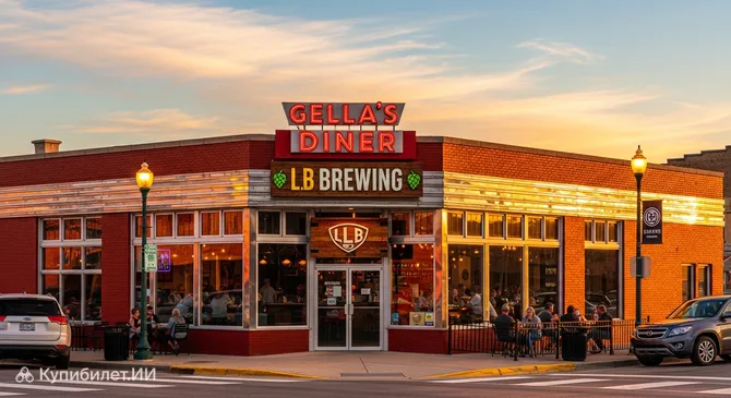 В самом сердце исторического района города Хейс находится уникальное место, объединившее под одной крышей уютную американскую закусочную и титулованную микропивоварню. Закусочная Gella’s и пивоварня Lb. Brewing Co. — это не просто ресторан, а настоящий символ городского возрождения, занимающий четыре тщательно отреставрированных исторических здания. Здесь индустриальный шик из ржавой стали и старого дерева гармонично соседствует с теплыми кирпичными стенами и яркими муралами.