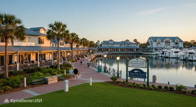 Представьте себе уютное пространство на побережье, где современный ландшафтный дизайн встречается с безмятежностью природы Южной Каролины. Именно так выглядит Парк Шелтер-Коув — общественный парк площадью более 3,5 акров, ставший излюбленным местом отдыха в городе Хилтон-Хед-Айленд. Этот живописный уголок в США предлагает гостям не просто прогулочные зоны, а полноценный центр досуга под открытым небом с потрясающими видами на ручей Broad Creek.