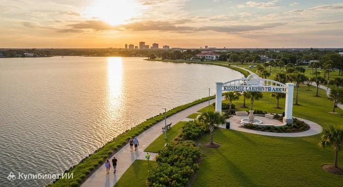 Здесь вас ждут просторные зеленые территории, идеально подходящие для неспешных прогулок, ухоженные аллеи, приглашающие насладиться свежим воздухом, и, конечно же, захватывающие панорамы озера. Парк на озере Киссимми – это место, где можно отдохнуть душой и телом, наслаждаясь красотой природы.