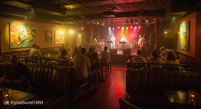 Пространство клуба разделено на две зоны: уютный ресторан с континентальной кухней и камерный джаз-холл с интимной сценой. Интерьер выдержан в стиле классических нью-йоркских клубов середины прошлого века — приглушенный свет, удобные кожаные диваны и безупречная акустика создают идеальные условия для погружения в мир импровизаций.