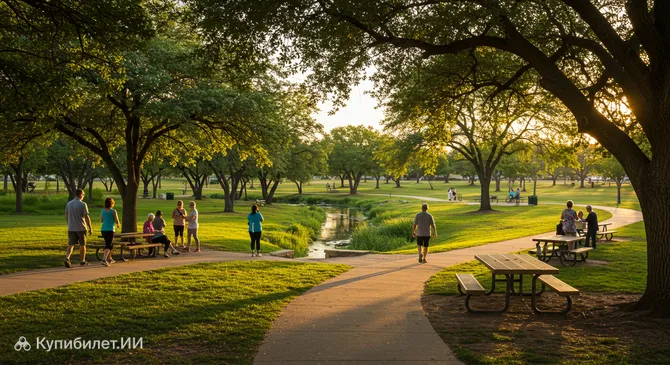 Два живописных пруда дополняют пейзаж, делая Bee Creek Park притягательным местом как для любителей тишины, так и для тех, кто ценит эстетику техасской природы. Это не просто площадка для прогулок, а настоящий зеленый оазис, сохранивший дух истории региона.