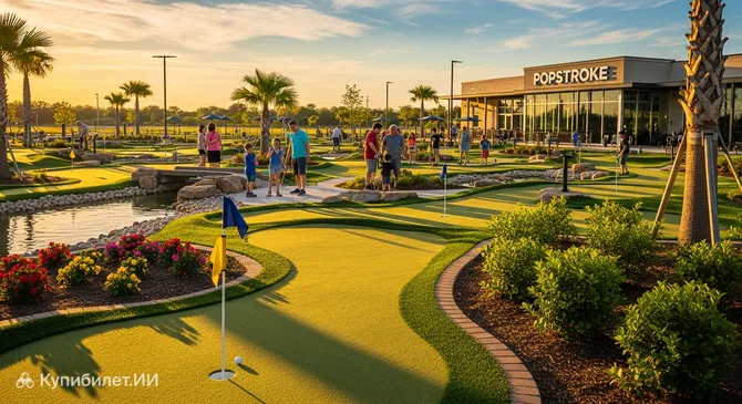 Представьте себе идеальное сочетание профессионального спорта и непринужденного отдыха: именно это предлагает «ПопСтроук» — ультрасовременный развлекательный комплекс в городе Колледж-Стейшен. Это место в США стало настоящим хитом среди местных жителей и туристов благодаря уникальному формату, объединяющему высококлассный мини-гольф, стильный ресторан и оживленный бар.