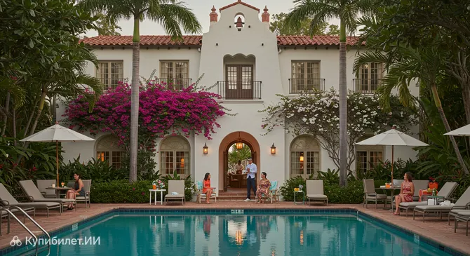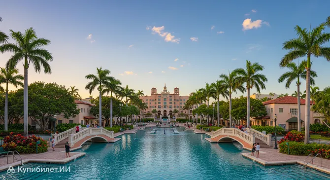 Корал-Гейблс славится своими знаковыми местами, которые привлекают туристов со всего мира. Среди них выделяются легендарный отель Biltmore с его величественной башней, ставший символом города, уникальный общественный бассейн Venetian Pool, созданный на месте бывшего кораллового карьера и наполняемый свежей родниковой водой, а также обширный тропический ботанический сад Fairchild, один из крупнейших в регионе. Не менее известна и Miracle Mile – главная торговая улица города с многочисленными бутиками, художественными галереями и уютными ресторанами.