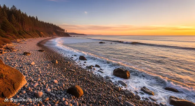 Представьте себе берег, где вместо привычного песка под ногами рассыпаны тысячи гладких, отполированных океаном камней. Это и есть Пеббл-Бич — удивительная природная достопримечательность, расположенная в городе Кресент-Сити, США. Пляж славится своей неповторимой атмосферой и мозаикой разноцветной гальки, которая создается силой приливных волн Тихого океана.