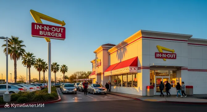 Многие путешественники, отправляясь в США, включают в свой маршрут посещение легендарного In-N-Out Burger, и филиал в городе Латроп — отличный пример того, почему эта сеть стала культовой. Это не просто фастфуд, а настоящий гастрономический символ Калифорнии, известный своим бескомпромиссным подходом к свежести продуктов. Здесь вы не найдете морозильных камер или микроволновых печей: картофель нарезается вручную прямо перед жаркой, а котлеты готовятся исключительно из охлажденной говядины.
