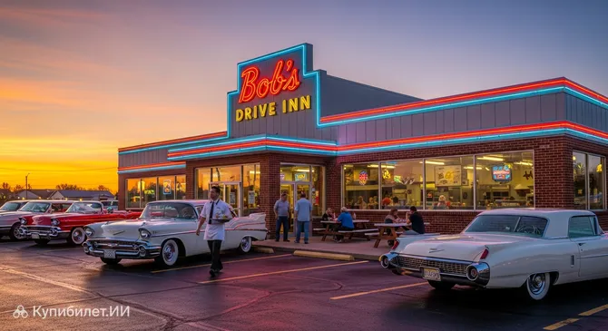 Представьте себе классическую Америку: блестящие капоты автомобилей, приветливый персонал и аромат свежеприготовленных бургеров. Именно такую атмосферу дарит своим гостям Бобс Драйв Инн — культовое заведение в городке Ле Марс. Этот уютный семейный ресторан стал настоящей легендой штата Айова, воплощая в себе лучшие традиции придорожных кафе США.
