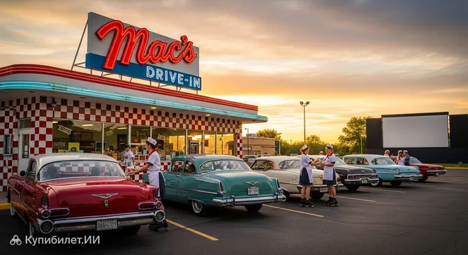 Погрузиться в атмосферу классической Америки середины прошлого века можно, заглянув в Макс Драйв-Ин — популярный ресторан, ставший настоящей легендой небольшого города МакКук. Это знаковое roadside-заведение, расположенное в штате Небраска, США, предлагает гостям уникальный опыт обслуживания в формате drive-in, где заказ подают прямо к вашему автомобилю.