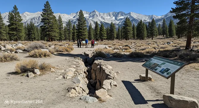 В самом сердце национального леса Иньо, неподалеку от города Маммот Лейкс, находится удивительный природный объект — Разлом Землетрясения (Earthquake Fault). Вопреки названию, это не типичный разлом, где пласты земли сдвинулись относительно друг друга, а глубокая вулканическая трещина в застывшем потоке риолитовой лавы. Это зрелище наглядно демонстрирует невероятную мощь подземных сил, которые когда-то буквально разорвали скальную породу.