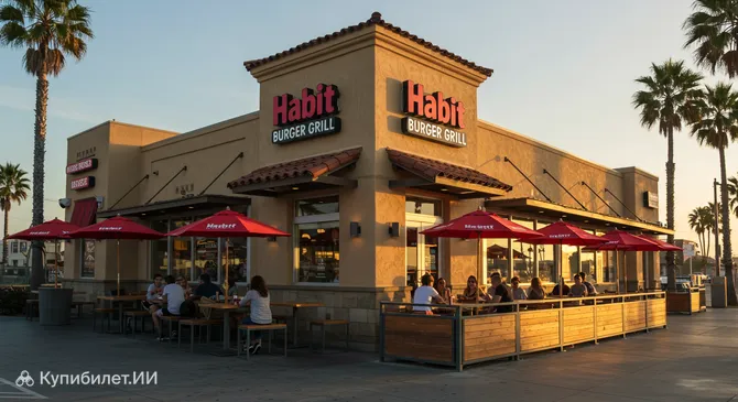 The Habit Burger Grill – это популярный американский ресторан быстрого питания в стиле "фаст-кэжуал", расположенный в солнечном городе Манхэттен-Бич, штат Калифорния, США. Это место славится своими фирменными бургерами "Charburgers", которые готовятся на открытом огне, придавая им неповторимый дымный аромат и сочный вкус. Если вы ищете, где вкусно и сытно перекусить, наслаждаясь непринужденной атмосферой, The Habit Burger Grill станет отличным выбором.