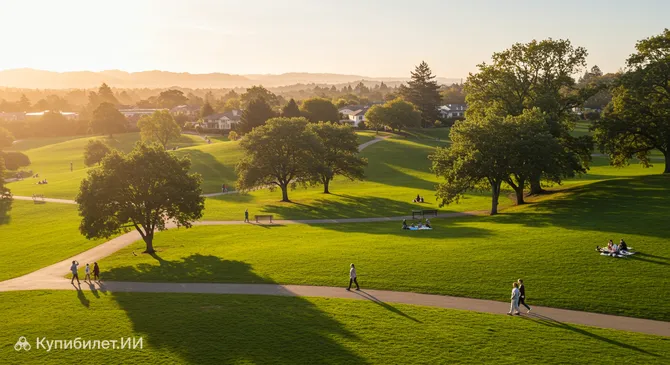 В самом сердце города Маунтин-Вью раскинулся живописный Парк Куэста — настоящий природный оазис площадью более 9 акров. Этот зеленый уголок в США славится своим густым массивом из величественных прибрежных дубов, голубых эвкалиптов и монтерейских сосен, создающих приятную тень даже в самые жаркие дни.