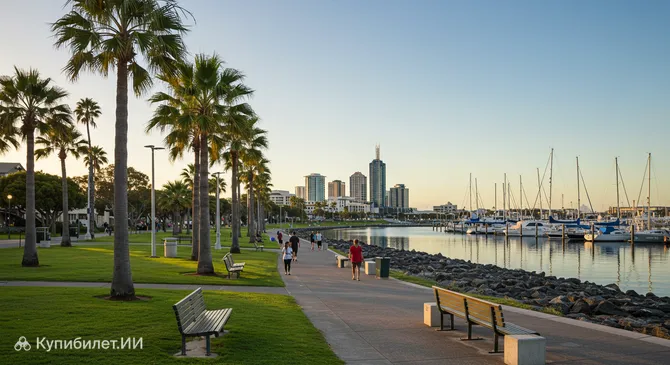 Территория парка включает в себя такие важные объекты, как городская Ратуша, общинный центр и знаменитый пирс, с которого открываются потрясающие виды на водную гладь. Здесь созданы отличные условия для семейного досуга: от современных игровых площадок до тенистых беседок, где можно укрыться от южного солнца.
