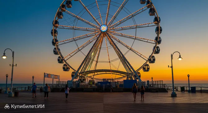 Колесо обозрения в Миртл-Бич (Myrtle Beach SkyWheel) — это одна из самых знаковых и популярных достопримечательностей города Мертл-Бич, расположенного в штате Южная Каролина, США. Этот впечатляющий аттракцион находится прямо на оживленной набережной Атлантического океана и является визитной карточкой всего курорта.