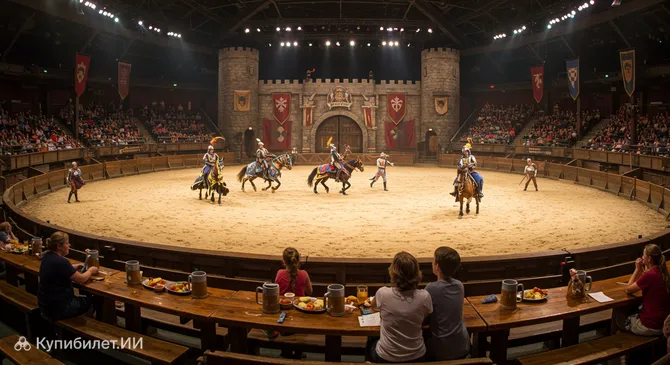 Средневековые Времена: Ужин и Турнир (Medieval Times Dinner & Tournament) – это захватывающее театрализованное представление и ресторан, который перенесет вас прямиком в эпоху доблестных рыцарей и прекрасных дам. Расположенное в городе Мертл-Бич, в США, это место предлагает уникальный опыт, сочетающий в себе ужин и зрелищный средневековый турнир, проходящий в стенах величественного замка.