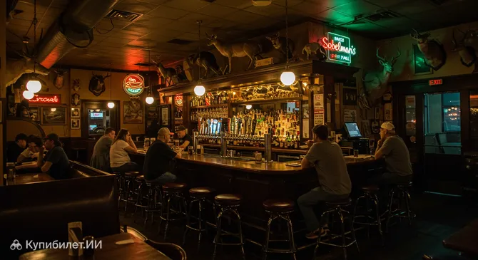 Интерьер бара выполнен в традиционном американском стиле: здесь вы увидите уютную деревянную мебель, стены украшены спортивной атрибутикой, а многочисленные телевизоры позволяют следить за спортивными трансляциями в компании друзей. Если вы ищете место, чтобы насладиться настоящим американским бургером и прочувствовать аутентичную атмосферу паба, Собельманс на Сент-Пол станет отличным выбором.