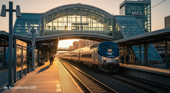 Станция Дженерал-Митчелл (Milwaukee Airport Railroad Station) — это современный и удобный транспортный узел, расположенный на южной окраине Милуоки. Это одна из немногих железнодорожных станций в США, которая обслуживает непосредственно международный аэропорт, предлагая путешественникам бесшовную пересадку с поезда на самолет. Станция, обслуживаемая популярной линией Amtrak Hiawatha, соединяет аэропорт с центром Милуоки и Чикаго, делая поездку быстрой и комфортной.