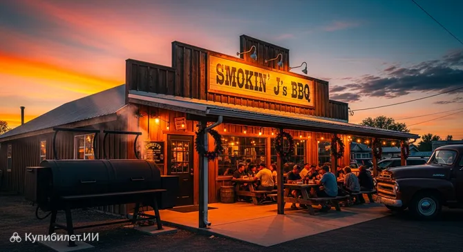 Несмотря на необычное соседство, качество еды здесь стоит на первом месте. В США культура барбекю возведена в культ, и Smokin’ J’s BBQ полностью соответствует этим высоким стандартам, используя только качественные ингредиенты и проверенные временем методы копчения. Высокий рейтинг заведения (4.5 звезды) и сотни положительных отзывов подтверждают, что за скромной вывеской скрывается одно из лучших мест региона.