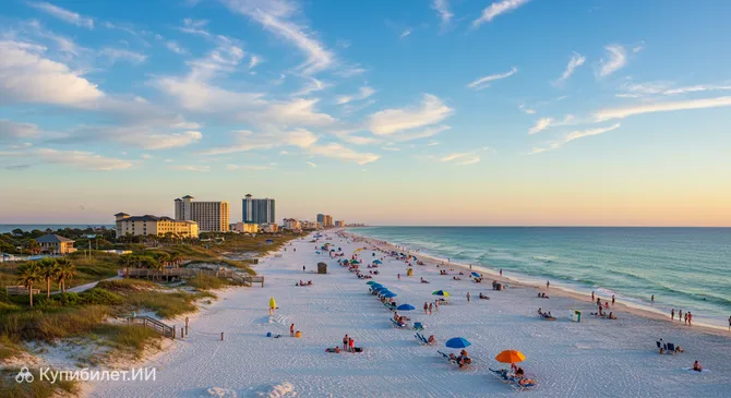 Мирамар Бич – это очаровательный курортный городок, расположенный на северо-западе штата Флорида, в США, прямо на живописном берегу Мексиканского залива. Он является частью знаменитого Изумрудного побережья и славится своим теплым климатом и уникальной атмосферой, где бирюзовые воды встречаются с ослепительно белым песком, создавая поистине райский уголок.