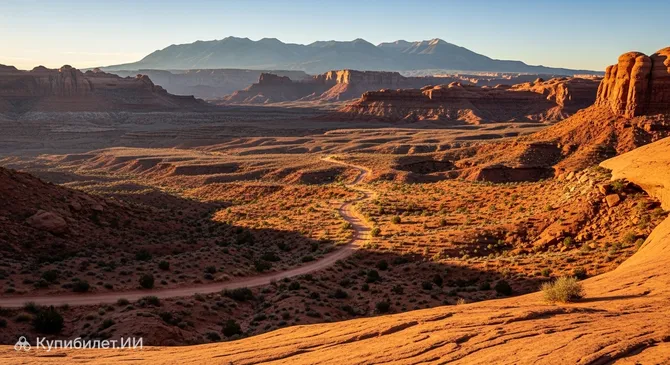 Представьте себе бескрайнее плато площадью 9000 акров, где взмывают в небо гигантские купола из застывшего красного песчаника и глубокие впадины сменяются гребнями скал. Это Рекреационная зона Сэнд-Флатс — национальное достояние США, расположенное в восточной части города Моаб. Здесь, в самом сердце плато Колорадо, пустынные пейзажи встречаются с величественными вершинами гор Ла-Саль, создавая невероятный визуальный контраст.
