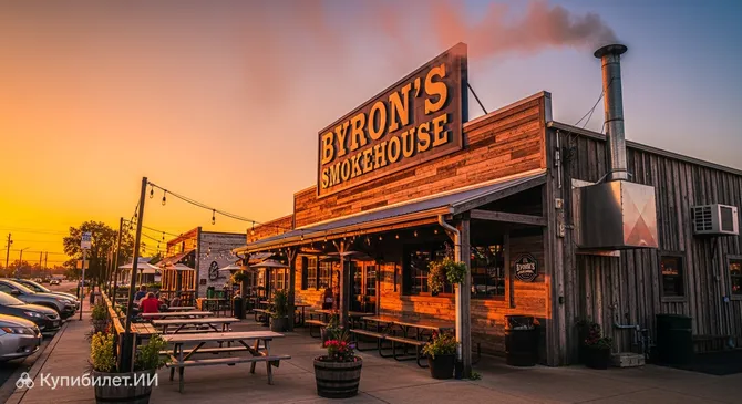 Если вы хотите почувствовать настоящий вкус американского Юга, то вам непременно стоит заглянуть в «Байронс Смоукхаус». Это легендарный ресторан в городе Оберн, штат Алабама, который по праву считается одним из лучших мест в регионе для знакомства с аутентичным барбекю и традиционными завтраками. Заведение славится своей непринужденной атмосферой в стиле «олд-скул» и искренним гостеприимством.