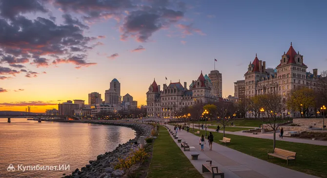 Олбани — это не просто город, а настоящая сокровищница истории и культуры, уютно расположившаяся на северо-востоке США. Город живописно раскинулся на западном берегу реки Гудзон, что придает ему особое очарование: с одной стороны — величественные мосты и набережные, с другой — зеленые парки и исторические кварталы.