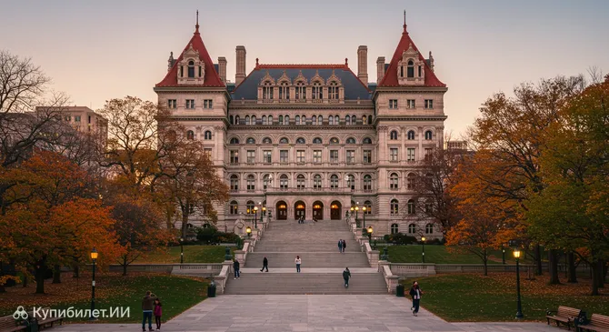 В самом сердце столицы штата возвышается монументальное здание из белого гранита и мрамора — шедевр архитектуры конца XIX века. Капитолий штата Нью-Йорк, расположенный в городе Олбани, служит официальной резиденцией правительства штата в США. Это величественное сооружение высотой 67 метров объединяет под своей крышей офис губернатора и залы заседаний законодательного органа.