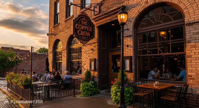 Коппер Кроу (The Copper Crow) — это не просто бар, а стильное гастрономическое пространство, вдохнувшее новую жизнь в историческое здание пивоварни Andrew Kirk & Son's в городе Олбани. Расположенное в индустриальном районе North End, это заведение в США мастерски сочетает суровую эстетику кирпичных складов XIX века с изысканным современным комфортом.