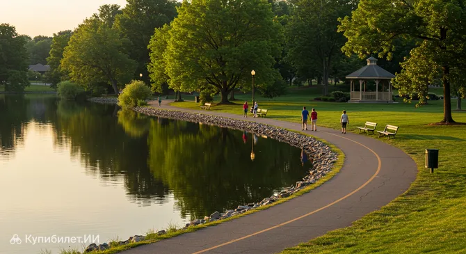 Парк Бэкингем-Лейк — это очаровательный городской оазис, скрытый в тихом жилом районе города Олбани, США. Сердцем этой зеленой зоны площадью 15 акров является живописное озеро Buckingham Pond. Неглубокий водоем, средняя глубина которого составляет около метра, создает умиротворяющую атмосферу и служит домом для множества водоплавающих птиц.