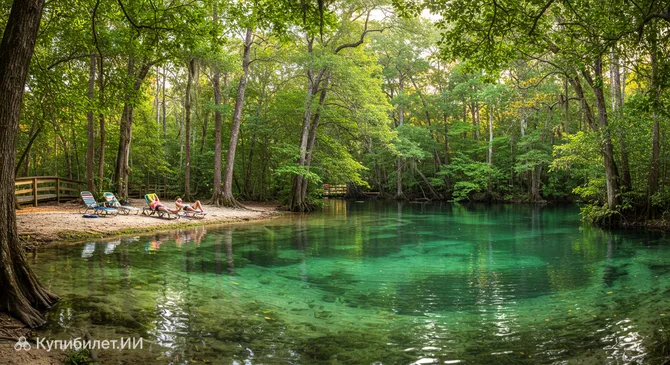 Парк штата Векива-Спрингс (Wekiwa Springs State Park) – это настоящий природный оазис, раскинувшийся на площади около 28 квадратных километров (7000 акров) неподалеку от Орландо, в штате Флорида, США. Это излюбленное место как для местных жителей, так и для туристов, ведь он находится всего в 20 минутах езды к северу от оживленного города. Сердцем парка и его главной достопримечательностью является великолепный природный источник с кристально чистой водой, температура которой круглый год держится на комфортной отметке 22°C.
