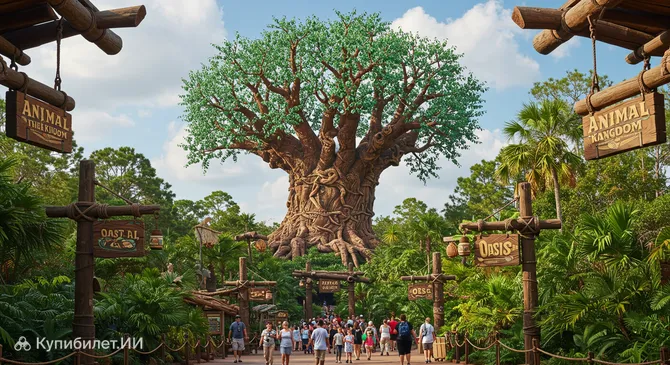 Тематический парк «Королевство животных» (Disney's Animal Kingdom), расположенный недалеко от Орландо в США, — это уникальное место, где волшебство Диснея встречается с дикой природой. Являясь самым большим по площади тематическим парком в мире, он посвящен животным и идее сохранения окружающей среды. Здесь гармонично сочетаются захватывающие аттракционы и масштабный сафари-парк, что делает его одним из самых необычных мест в комплексе Walt Disney World.