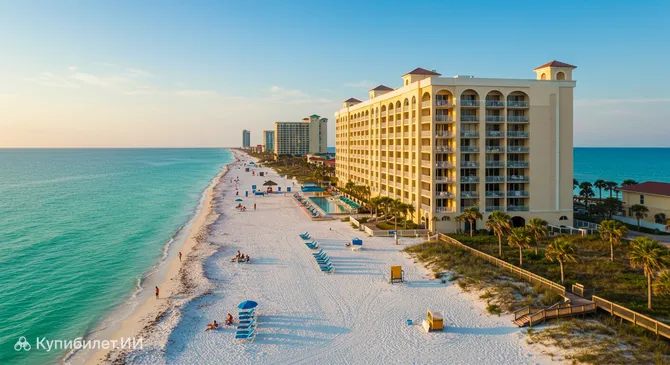 На живописном побережье штата Флорида, у самой кромки Мексиканского залива, расположился Дюнс оф Панама Кондос. Это масштабный курортный комплекс в городе Панама-Сити, который представляет собой объединение нескольких современных зданий, раскинувшихся вдоль почти полукилометровой полосы сахаро-белого пляжа.