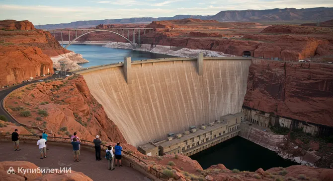 Плотина Глен-Каньон представляет собой не только важнейший инженерный объект в системе управления водными ресурсами реки Колорадо, но и значимую туристическую достопримечательность. Она находится в невероятно красивой местности, на границе штатов Аризона и Юта, в районе, известном как Глен-Каньон, который частично был затоплен после создания водохранилища. Сооружение поражает своими масштабами и гармонично вписывается в окружающий ландшафт.
