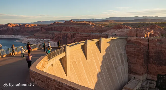 Площадка является популярным туристическим объектом, и это неудивительно. Отсюда открывается впечатляющая панорама каньона, самой плотины и живописных окрестностей. Взгляд также охватывает часть огромного озера Пауэлл – второго по величине искусственного водохранилища в США, которое образовалось благодаря строительству плотины Глен-Каньон. Это место привлекает фотографов и всех, кто ценит природные и рукотворные чудеса.