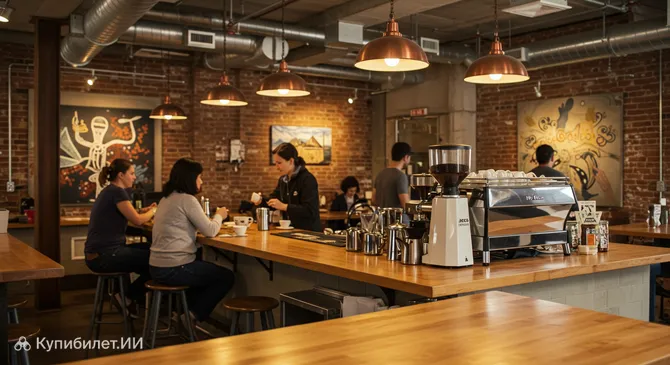De Fer Coffee & Tea — это атмосферное заведение, расположенное в оживленном районе Стрип Дистрикт в городе Питтсбург. Оно представляет собой гармоничное сочетание современной спешелти-кофейни, чайной и уютного бара. Это место притягивает как местных жителей, так и путешественников своей открытой планировкой, индустриальным дизайном и ароматом свежеобжаренных зерен, который встречает гостей прямо с порога.