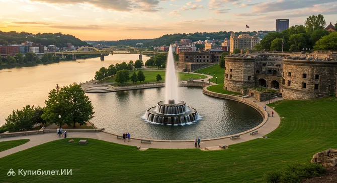 Пойнт-Стейт-парк (Point State Park) – это знаковый городской парк, расположенный в самом сердце Питтсбурга, штат Пенсильвания, США. Он занимает стратегически важное и невероятно живописное место на так называемом «Золотом треугольнике» — точке, где сливаются реки Аллегейни и Мононгахила, образуя могучую реку Огайо. Площадь этого зеленого оазиса составляет около 14,5 гектаров (примерно 36 акров).
