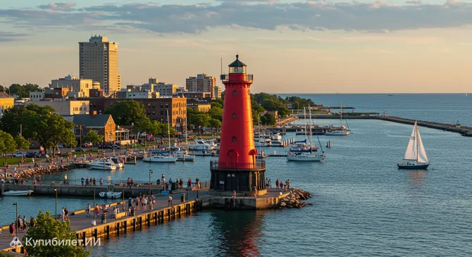Расин — это очаровательный город, уютно расположившийся на живописных берегах озера Мичиган в штате Висконсин, США. Его стратегическое положение между такими крупными городами, как Чикаго и Милуоки, делает Расин привлекательной точкой для путешественников, исследующих этот регион Великих озер. Близость к воде дарит городу особую атмосферу, с протяженными пляжами, освежающим бризом и великолепными рассветами, создавая ощущение курортного городка.