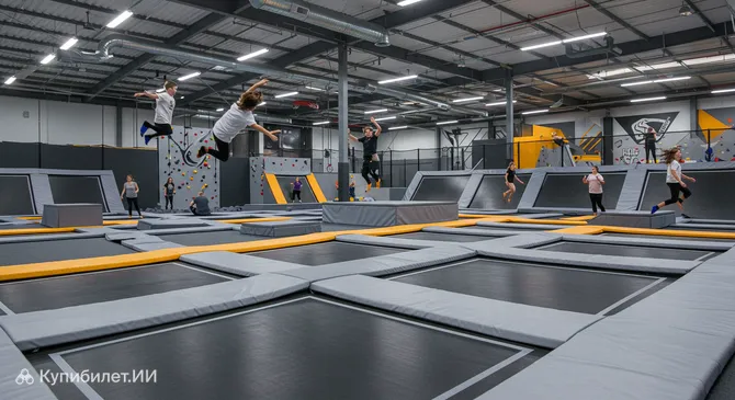 Представьте себе просторное крытое пространство, где каждый найдет занятие по душе. Здесь вас ждут батуты самых разных размеров и конфигураций, предназначенные как для свободных прыжков, так и для отработки трюков. Кроме того, в парке оборудованы специальные зоны для спортивных игр на батутах, такие как вышибалы или баскетбол, а также игровые площадки для самых маленьких посетителей.