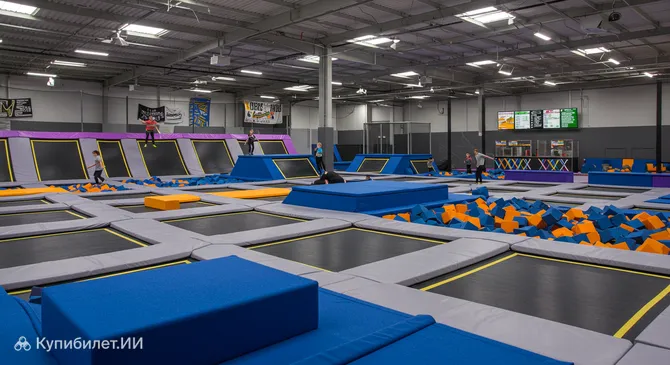 Это не просто площадка с пружинящими полотнами, а полноценный крытый развлекательный комплекс, оборудованный по последнему слову техники. Основную часть территории занимают десятки соединенных батутов, включая наклонные поверхности, которые превращают обычные прыжки в захватывающее акробатическое приключение.