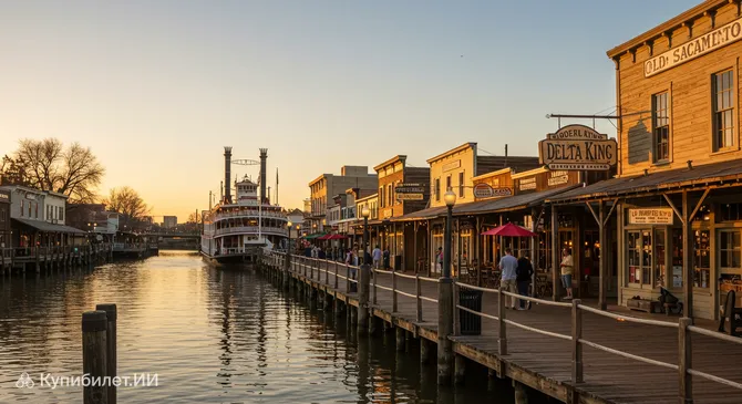 Старый Сакраменто набережная — это живописный исторический район в городе Сакраменто, США, раскинувшийся на берегу одноименной реки. Это место — настоящий портал в прошлое, переносящий посетителей во времена Калифорнийской золотой лихорадки середины XIX века. Район, занимающий несколько кварталов, был тщательно восстановлен, чтобы воссоздать атмосферу американского Запада 1850-х годов.