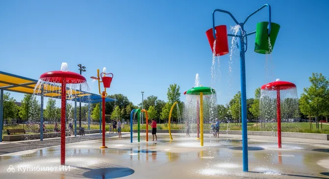Парк представляет собой многоакровую территорию, где центральное место занимает инновационный splash pad. В отличие от обычных бассейнов, эта зона спроектирована как безопасное пространство с фонтанами и водными пушками, что делает её идеальной для семей с детьми разного возраста. Здесь нет глубокой воды, но есть бесконечный поток брызг и радости.