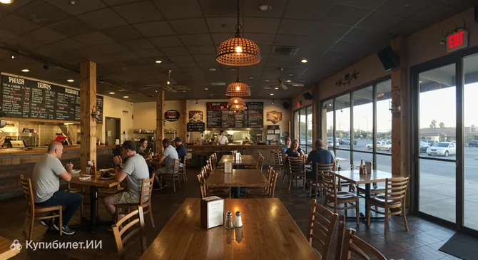 Атмосфера в Phil's BBQ всегда оживленная и непринужденная, что делает его идеальным местом для семейных обедов, ужинов в кругу друзей или просто для того, чтобы вкусно поесть в приятной обстановке. Приятным дополнением является наличие в меню вегетарианских опций, благодаря чему каждый посетитель сможет найти блюдо по своему вкусу. Посещение этого ресторана – это отличная возможность познакомиться с кулинарными традициями американского Юга.