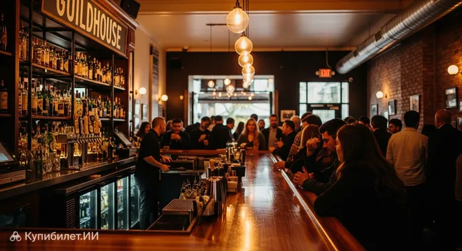 Интерьер бара продуман до мелочей: удобные столы для длительных игровых сессий, приглушенный свет и дружелюбный персонал создают ощущение закрытого клуба для "своих", где рады каждому. Будучи не просто закусочной, а настоящим комьюнити-центром, Гилдхаус заслуженно входит в списки лучших мест для неформальных встреч и вечеринок в городе.