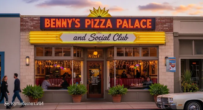 Benny’s Pizza Palace and Social Club — это яркое и концептуальное пространство в городе Сан-Луис-Обиспо, которое объединяет в себе черты стильного бара и уютной пиццерии. Это место стало точкой притяжения для тех, кто ценит качественную кухню и эстетику классических американских общественных клубов в современном прочтении.