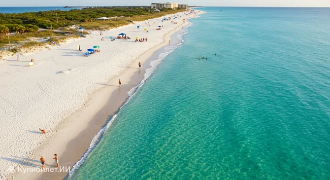 На побережье Мексиканского залива, в солнечной Сарасоте, находится одно из самых впечатляющих мест штата Флорида — Sarasota Beach. Этот пляж, расположенный на живописном острове Сиеста-Ки в США, по праву считается настоящим чудом природы. Главная особенность этого места — его уникальный белый кварцевый песок, который по своей текстуре напоминает сахарную пудру и остается прохладным на ощупь даже в самый жаркий полдень.