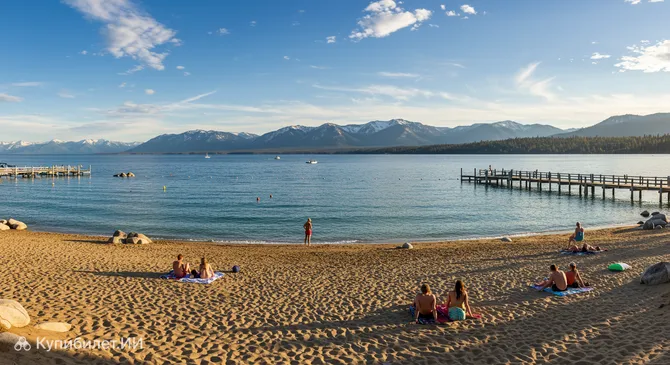 Regan Beach славится своей спокойной и уютной атмосферой, что делает его идеальным местом для семейного отдыха и расслабления. Здесь предусмотрена удобная инфраструктура, позволяющая комфортно провести время. Посетители могут не только искупаться в кристально чистых водах озера Тахо, но и насладиться великолепными панорамными видами на само озеро и величественные горы Сьерра-Невада, обрамляющие его.