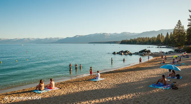 Лейквью Коммонс (Lakeview Commons) — это живописный общественный пляж и парк, расположенный в городе Саут-Лейк-Тахо, штат Калифорния, США. Он находится на южном берегу знаменитого озера Тахо и является излюбленным местом отдыха как для местных жителей, так и для туристов. Главная привлекательность этого места заключается в потрясающих видах на озеро и окружающие его горные вершины, а также в удачном сочетании природной красоты и удобств для отдыха на свежем воздухе.