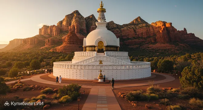 Ступа Амитабхи и Парк Мира – это уникальный буддийский комплекс, расположенный в живописном городе Седона, штат Аризона, США. Это место притягивает посетителей своей умиротворяющей атмосферой и возможностью прикоснуться к духовным практикам в окружении потрясающей природы.