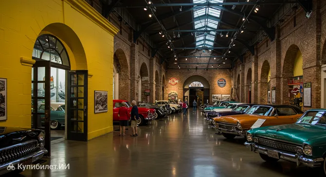 Внутри музея царит особая ностальгическая атмосфера: идеально отполированные полы и профессиональное освещение подчеркивают каждую линию хромированных деталей. Помимо частных легковых автомобилей, в экспозиции можно увидеть исторические пожарные машины и другие служебные транспортные средства, которые когда-то были частью повседневной жизни Америки.