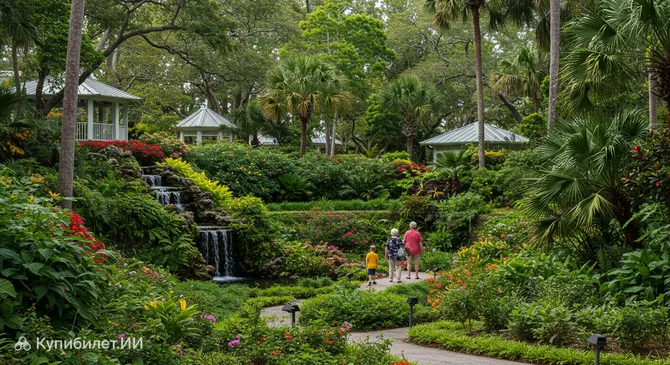 На сравнительно небольшой территории, около 1,6 гектара, вас ждет встреча с более чем 500 видами растений. Здесь можно увидеть экзотические деревья, причудливые кустарники, яркие цветы и величественные пальмы, собранные со всего мира. Благодаря особому микроклимату, который формируется в этой уютной низине, растения в Санкен-Гарденс цветут круглый год, создавая атмосферу вечнозеленого тропического рая прямо в черте оживленного города. Это идеальное место для тех, кто ищет умиротворения и хочет насладиться красотой природы.