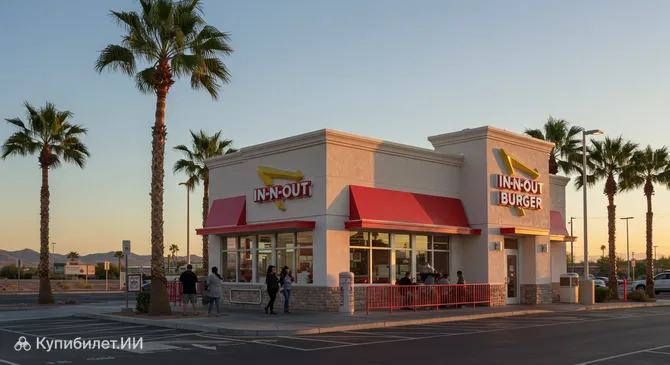 Ин-Н-Аут Бургер – это не просто очередной ресторан быстрого питания, а настоящая легенда американского фастфуда, особенно популярная на Западном побережье США. Один из таких ресторанов гостеприимно встречает посетителей в городе Северный Лас-Вегас. Сеть славится своим неизменным качеством и классическим подходом к приготовлению бургеров, картофеля фри и молочных коктейлей, которые стали визитной карточкой бренда.